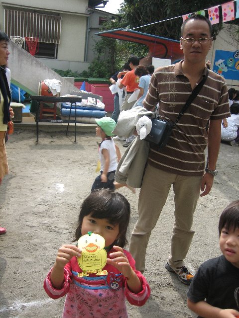 徒競走は出遅れて残念でしたが、ダンス、玉入れ、障害物競走など一所懸命頑張ってました。