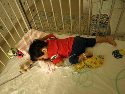 肺炎です。3週間後退院。。。私とパパ交代で泊まりました。