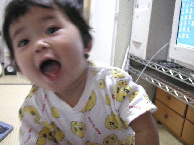 思いっきりママに飛びついてきます。頭突きされるのでママは鼻血が出そうになります。