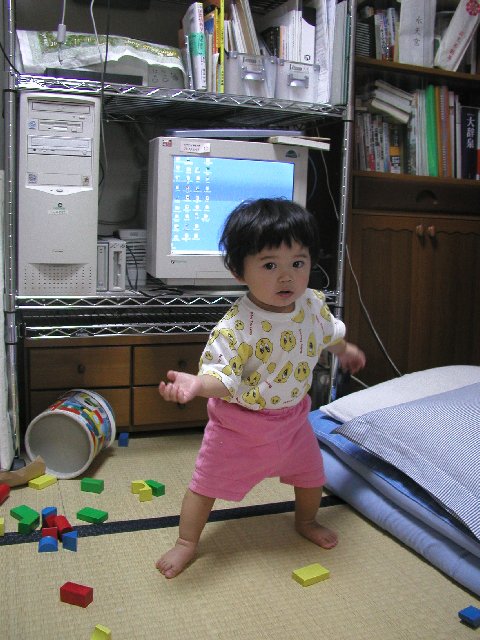 よいしょ!ひとりで立っちできるぞ!やっとこの瞬間の写真が撮れました。