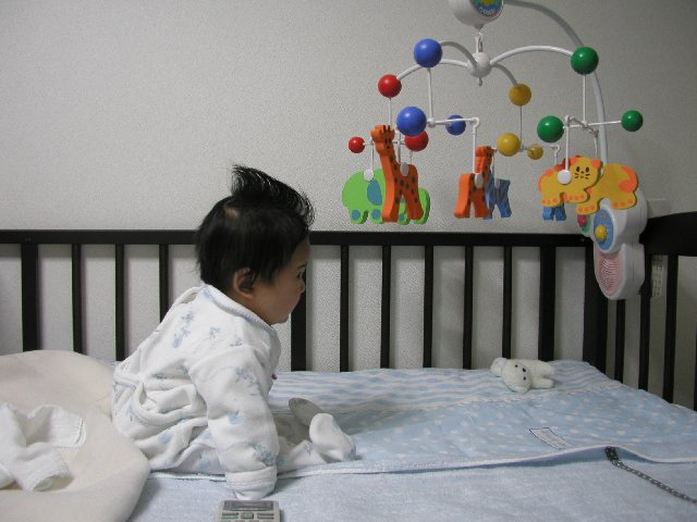 小さな声で歌を歌ってあげたら、ちょっとニコってしました。