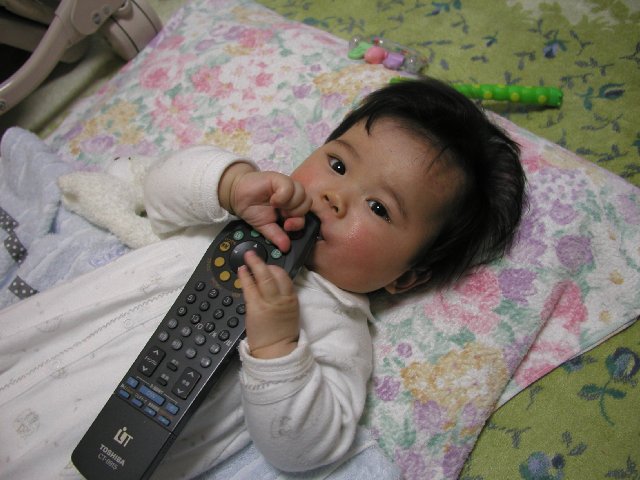 キーボードやテレビのリモコンのようなボタンのいっぱいついている黒いものに興味があるようですね。