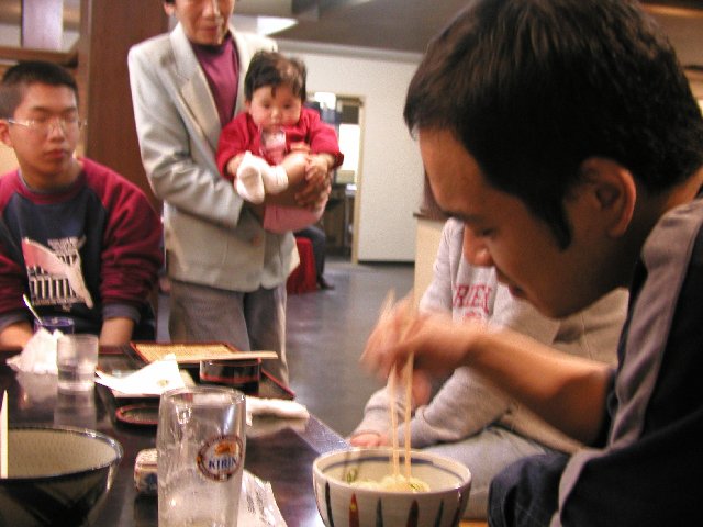 パパは、さぬきうどん三昧でーす。滞在中に何杯食べたかな?志帆は見てるだけ。