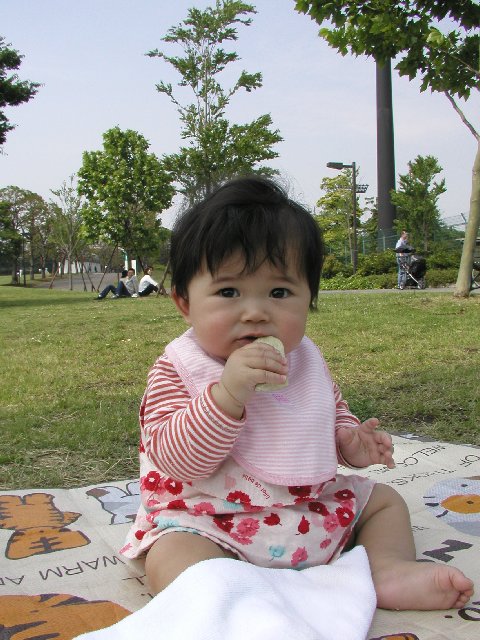 志帆が公園で食べたのは米粉のおせんべです。唯一食べられるおやつですね。